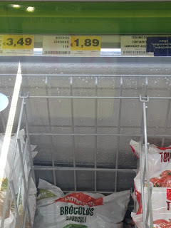 Normalmente, compro legumes frescos, mas, nas poucas vezes que tenho espaço no meu minúsculo congelador, opto por comprar sacos de brócolos (porque é o que mais gasto em casa e dá sempre jeito tê-los à mão de semear!). E vai daí vejo isto: