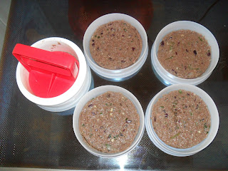 E eis que fiz o que tinha planeado, mas não fiz em quantidades industriais pois tenho uma vergonha de congelador. De qualquer forma, até nem demorei muito tempo a fazer (a Bimby ajuda MUITO!), por isso hei-de fazer mais vezes... E, claro, valeu-me o conjunto Tupperware de fazer hambúrgueres (devia ter pedido 2 ou 3) pois aquele só dá para 5 hambúrgueres e assim podia fazer muito mais (num futuro congelador que tenha!)...