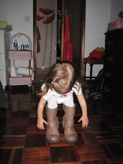 (Ela aqui a calçar as minhas botas...! A fazer exatamente o contrário do que falo neste post!...)